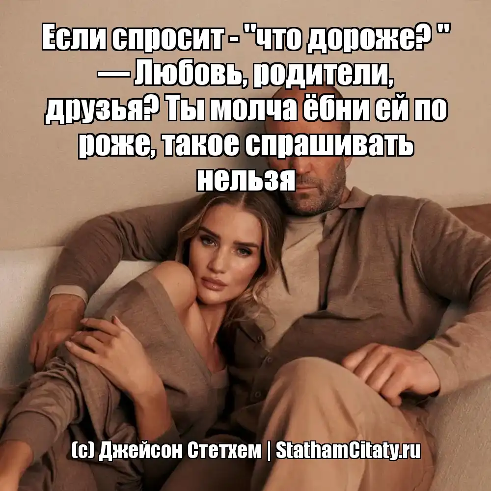 Если спросит - "что дороже? " — Любовь, родители, друзья? Ты молча ёбни ей по роже, такое спрашивать нельзя (с) Джейсон Стетхем
