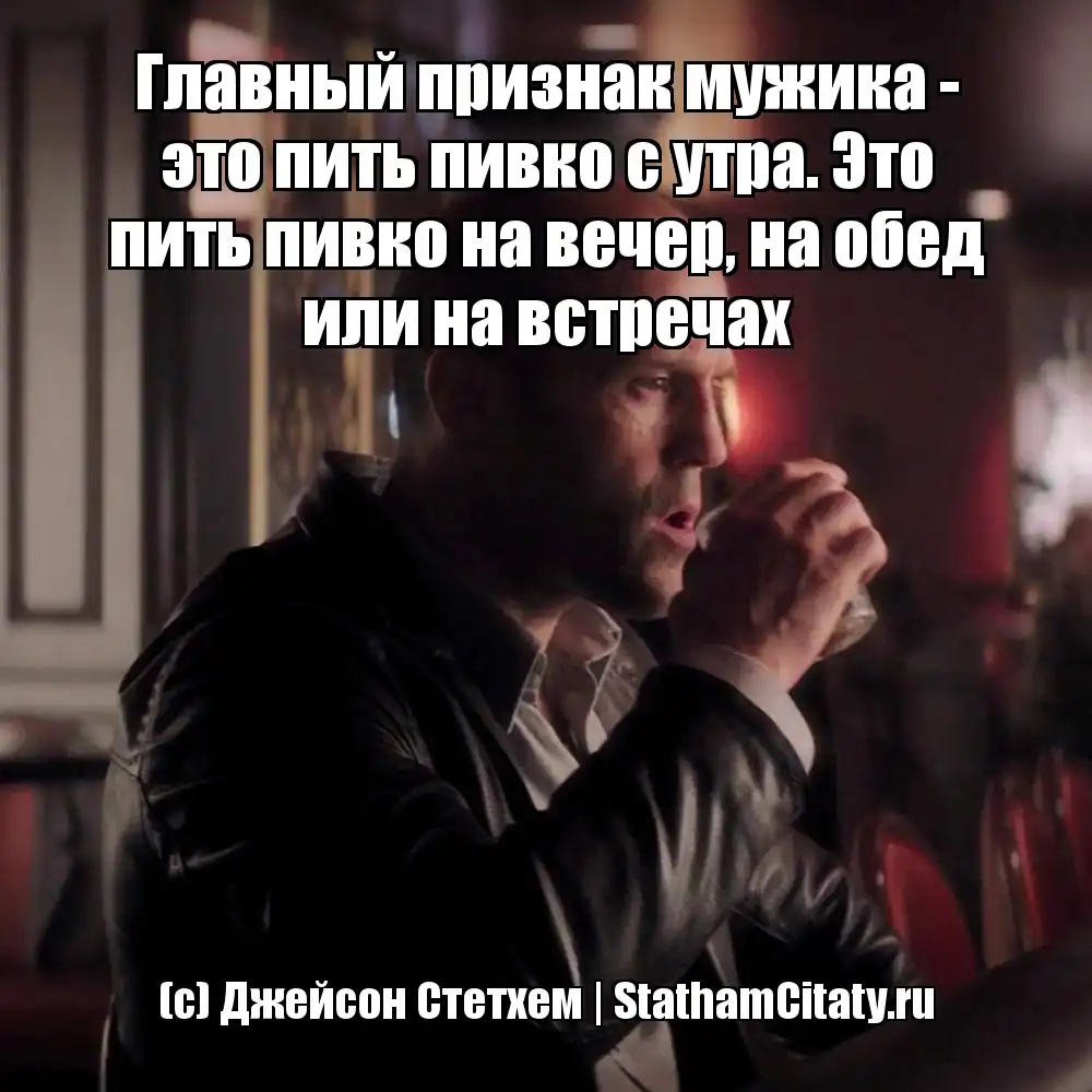 Главный признак мужика - это пить пивко с утра. Это пить пивко на вечер, на обед или на встречах (с) Джейсон Стетхем