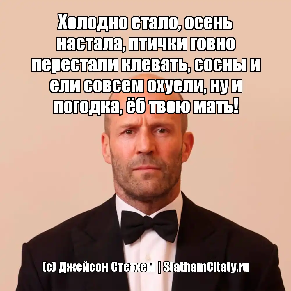 Холодно стало, осень настала, птички говно перестали клевать, сосны и ели совсем охуели, ну и погодка, ёб твою мать! (с) Джейсон Стетхем