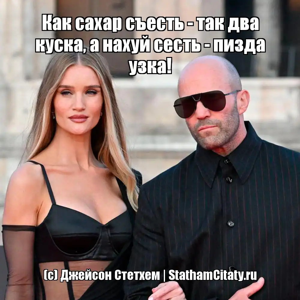 Как сахар съесть - так два куска, а нахуй сесть - пизда узка! (с) Джейсон Стетхем