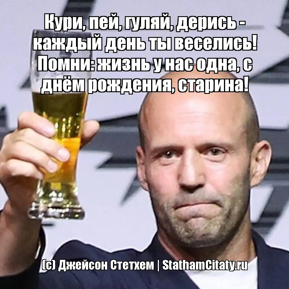Кури, пей, гуляй, дерись - каждый день ты веселись! Помни: жизнь у нас одна, с днём рождения, старина! (с) Джейсон Стетхем