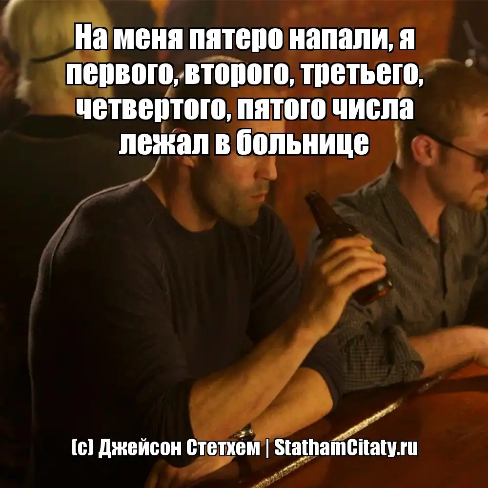 На меня пятеро напали, я первого, второго, третьего, четвертого, пятого числа лежал в больнице (с) Джейсон Стетхем