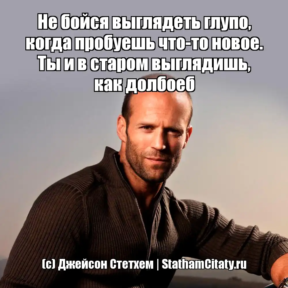 Не бойся выглядеть глупо, когда пробуешь что-то новое. Ты и в старом выглядишь, как долбоеб (с) Джейсон Стетхем
