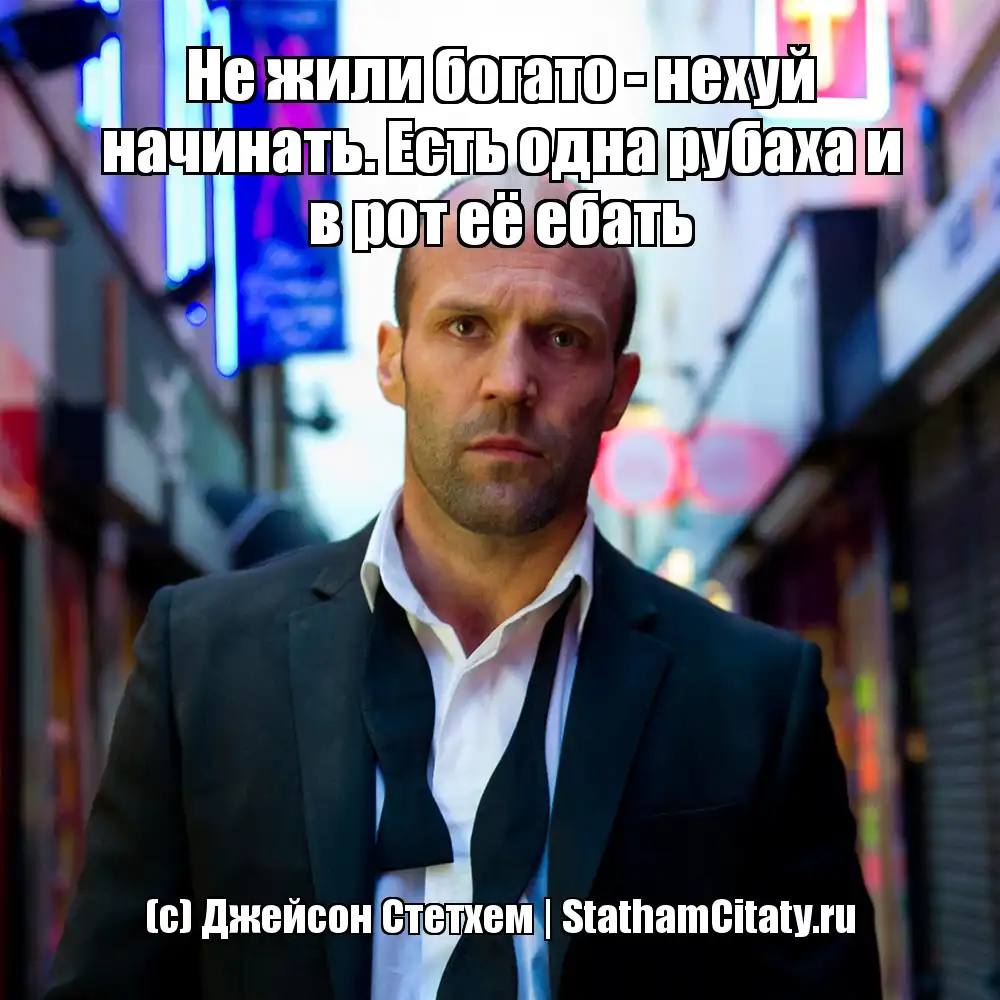 Не жили богато - нехуй начинать. Есть одна рубаха и в рот её ебать (с) Джейсон Стетхем