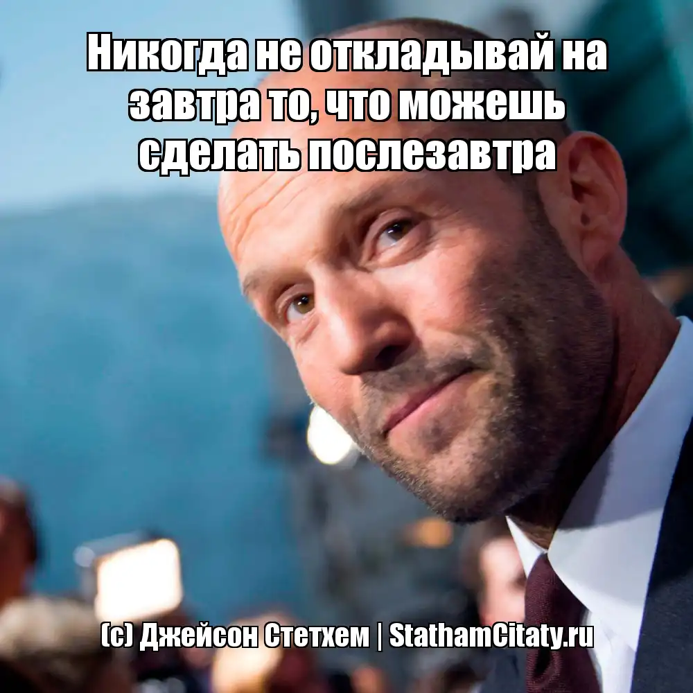 Никогда не откладывай на завтра то, что можешь сделать послезавтра (с) Джейсон Стетхем