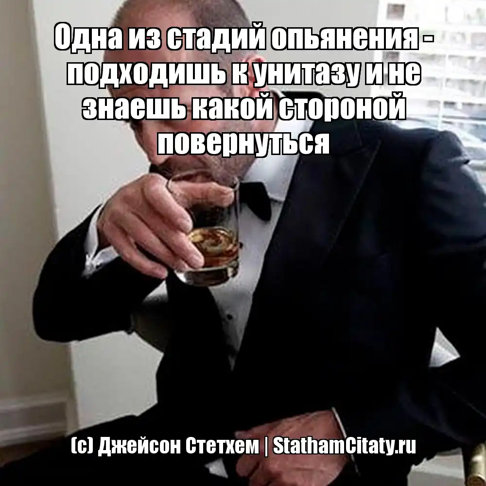 Одна из стадий опьянения - подходишь к унитазу и не знаешь какой стороной повернуться (с) Джейсон Стетхем