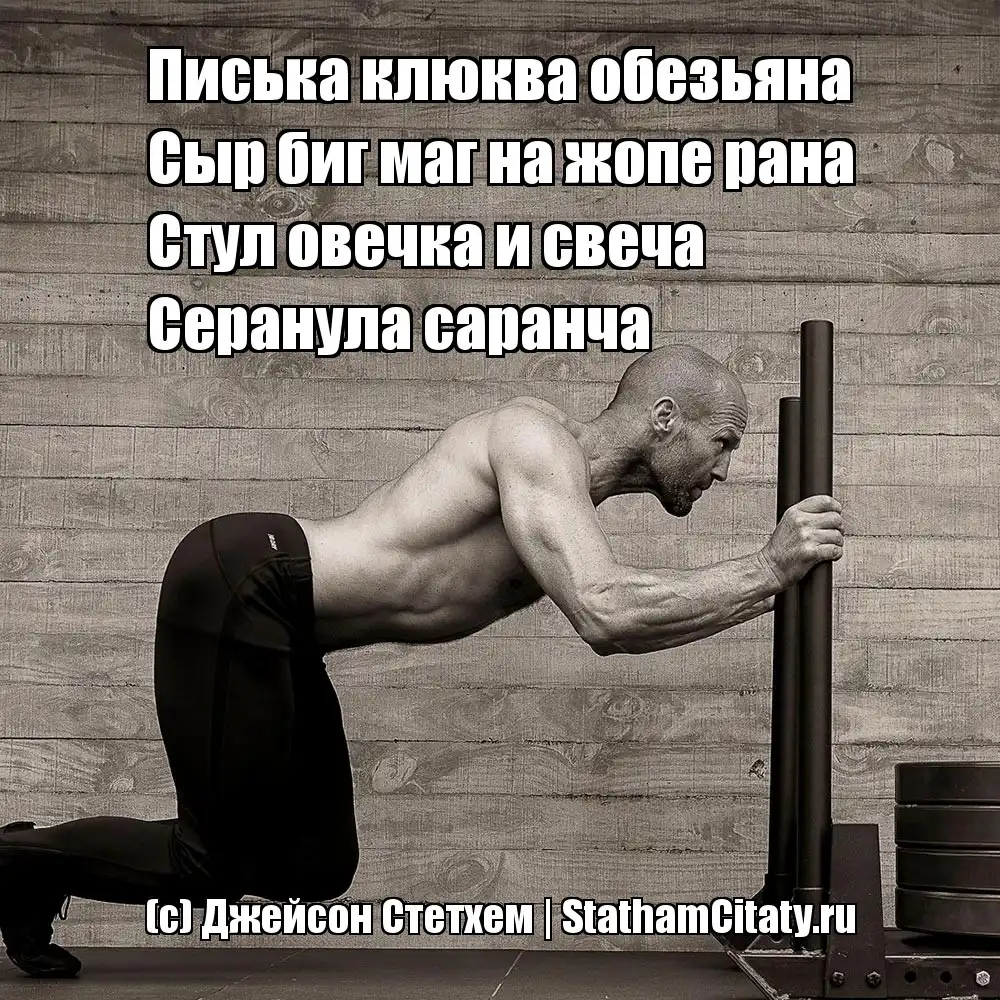 Писька клюква обезьяна Сыр биг маг на жопе рана Стул овечка и свеча Серанула саранча (с) Джейсон Стетхем