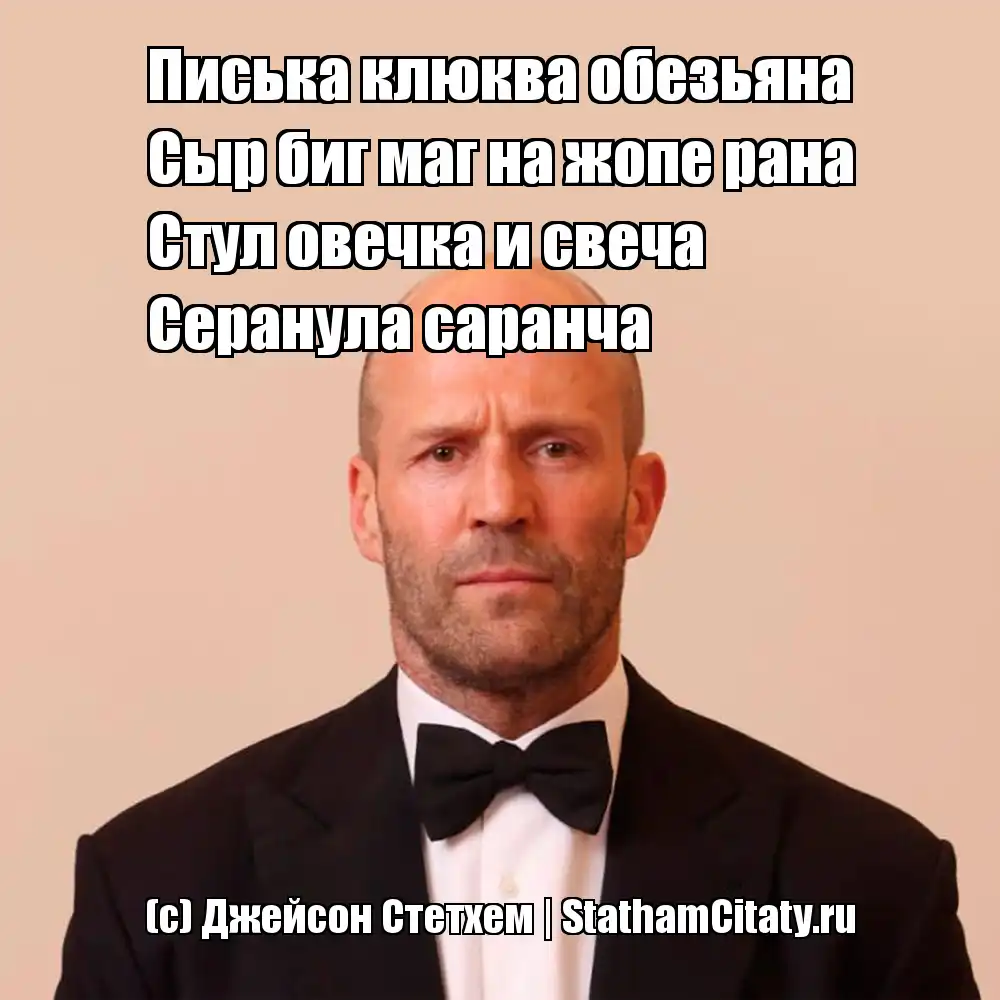 Писька клюква обезьяна Сыр биг маг на жопе рана Стул овечка и свеча Серанула саранча (с) Джейсон Стетхем