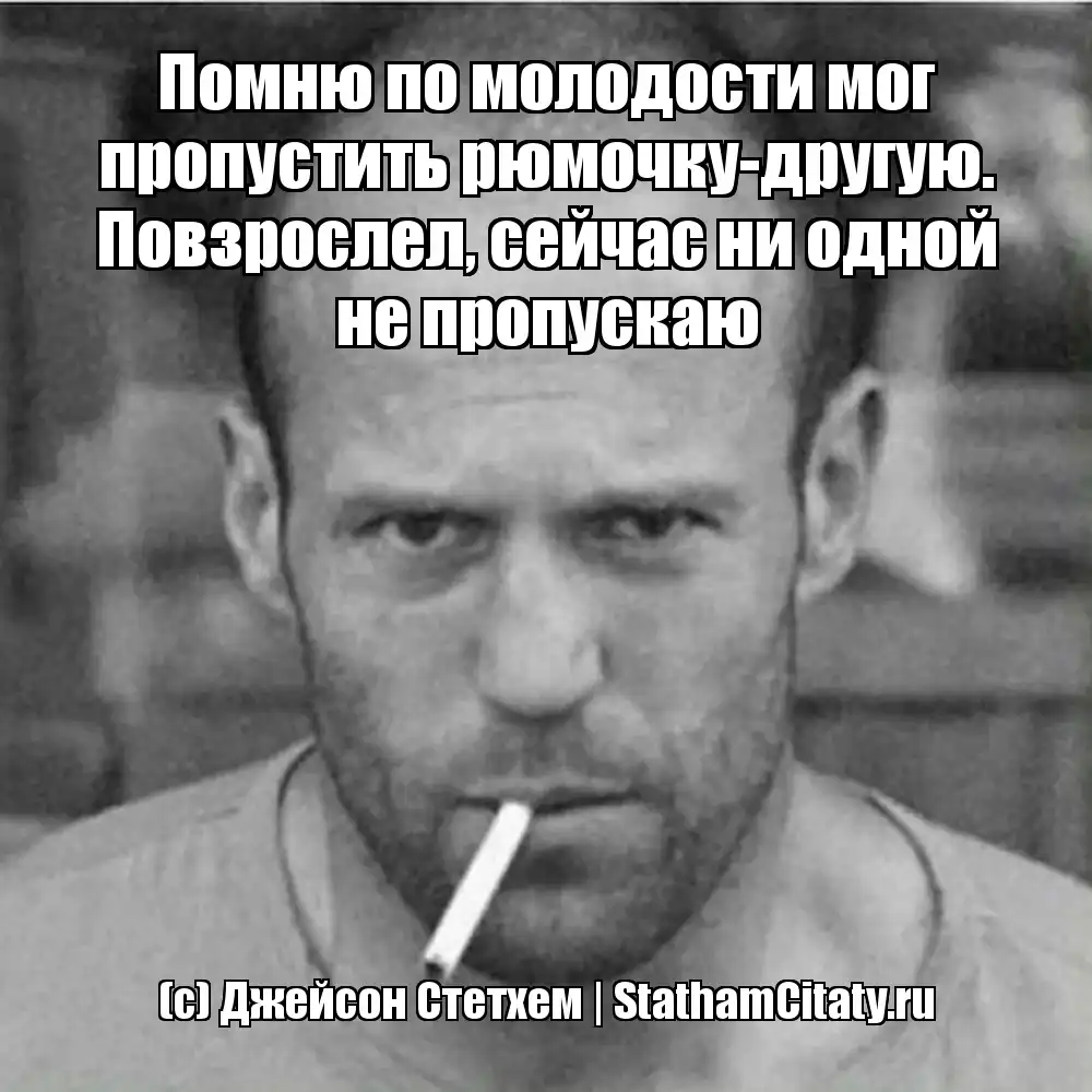 Помню по молодости мог пропустить рюмочку-другую. Повзрослел, сейчас ни одной не пропускаю (с) Джейсон Стетхем
