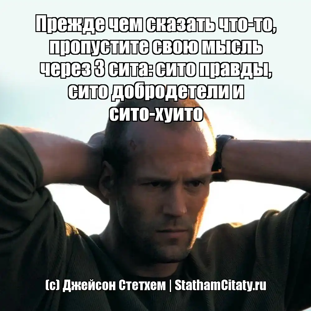 Прежде чем сказать что-то, пропустите свою мысль через 3 сита: сито правды, сито добродетели и сито-хуито (с) Джейсон Стетхем