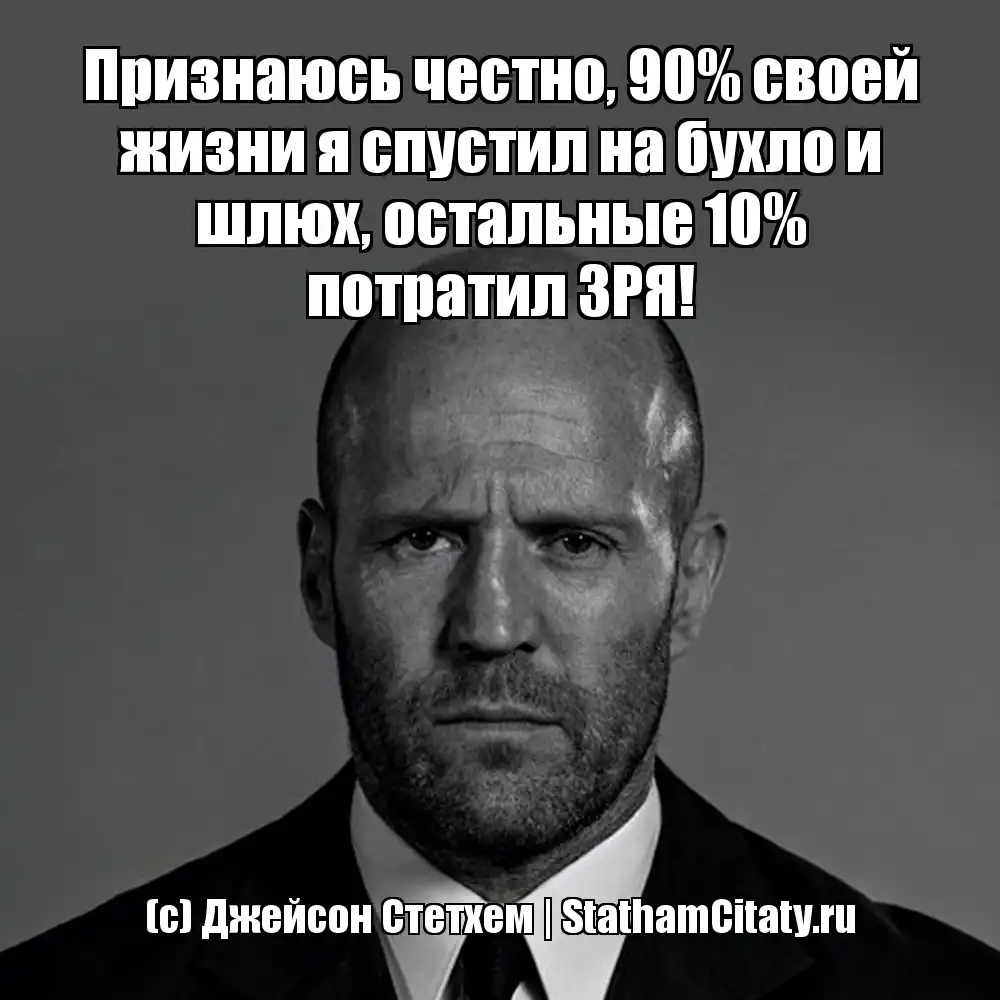 Признаюсь честно, 90% своей жизни я спустил на бухло и шлюх, остальные 10% потратил ЗРЯ! (с) Джейсон Стетхем