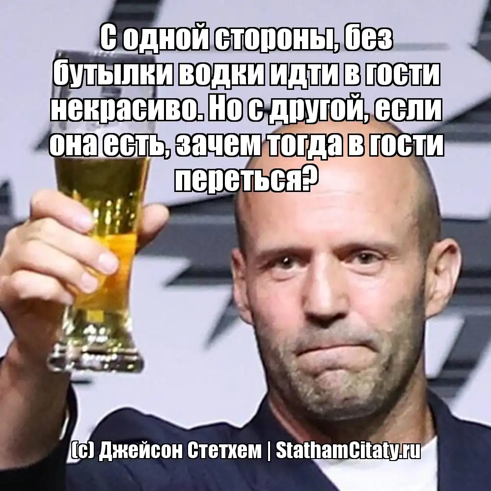 С одной стороны, без бутылки водки идти в гости некрасиво. Но с другой, если она есть, зачем тогда в гости переться? (с) Джейсон Стетхем