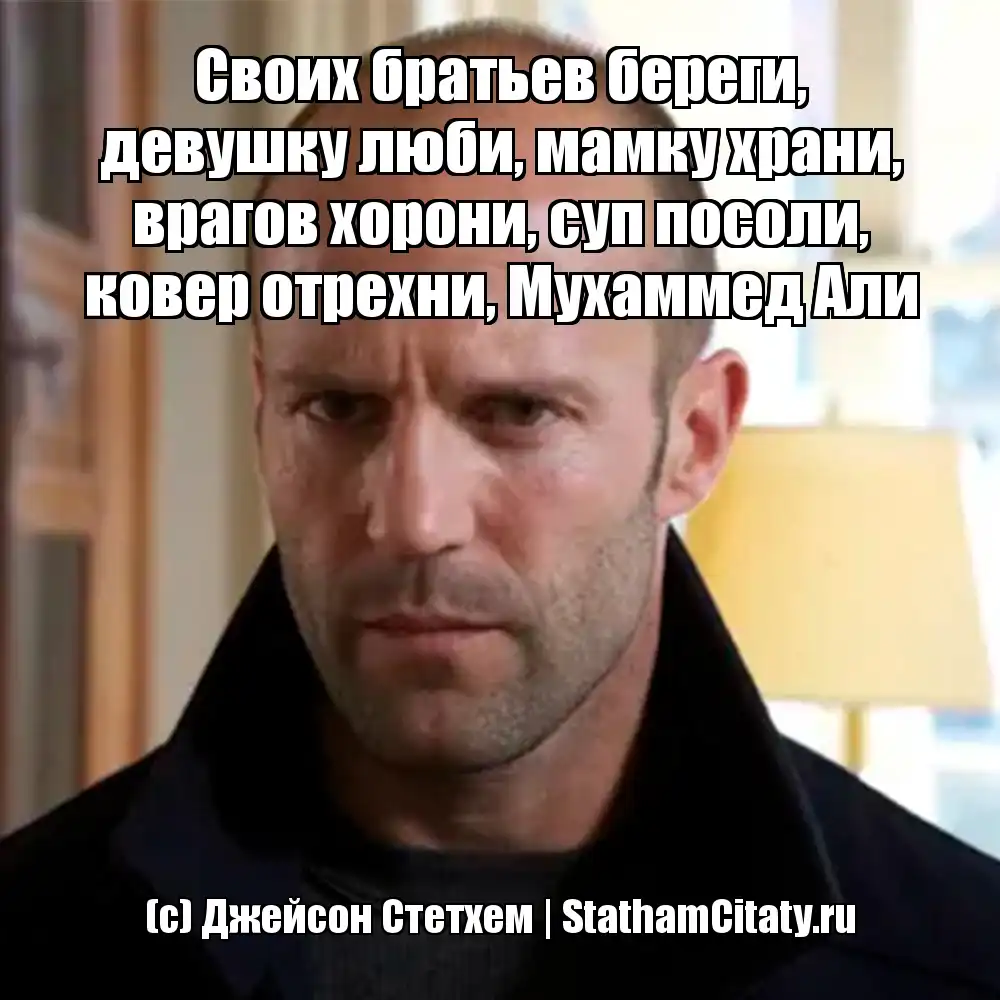 Своих братьев береги, девушку люби, мамку храни, врагов хорони, суп посоли, ковер отрехни, Мухаммед Али (с) Джейсон Стетхем