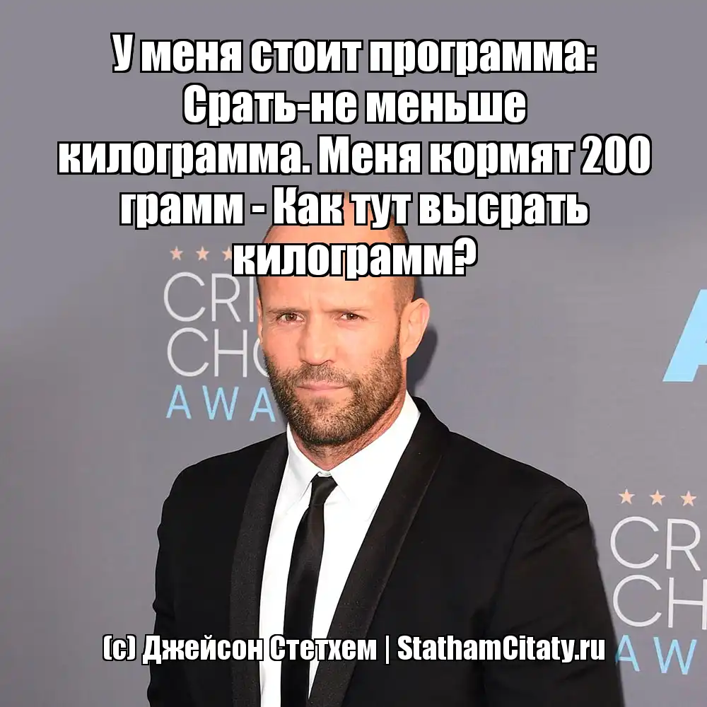 У меня стоит программа: Срать-не меньше килограмма. Меня кормят 200 грамм - Как тут высрать килограмм? (с) Джейсон Стетхем