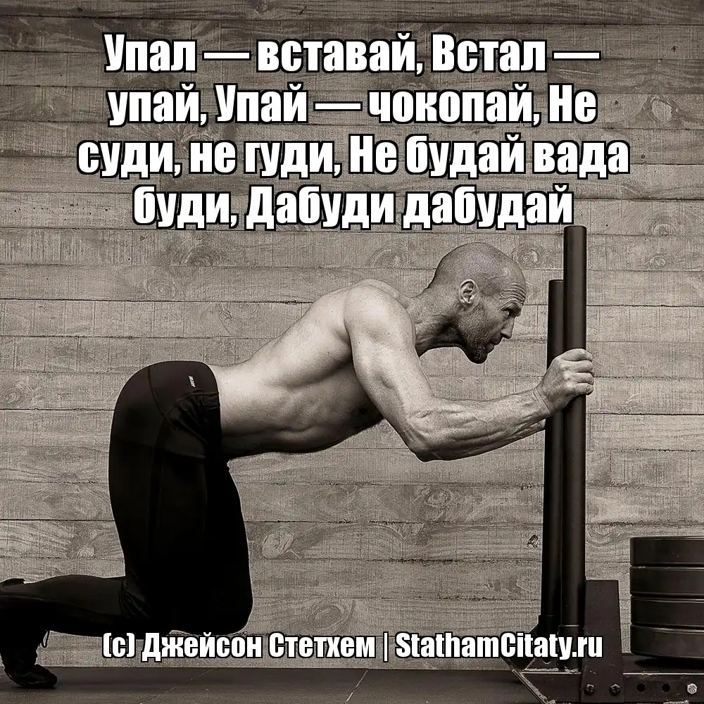 Упал — вставай, Встал — упай, Упай — чокопай, Не суди, не гуди, Не будай вада буди, Дабуди дабудай (с) Джейсон Стетхем