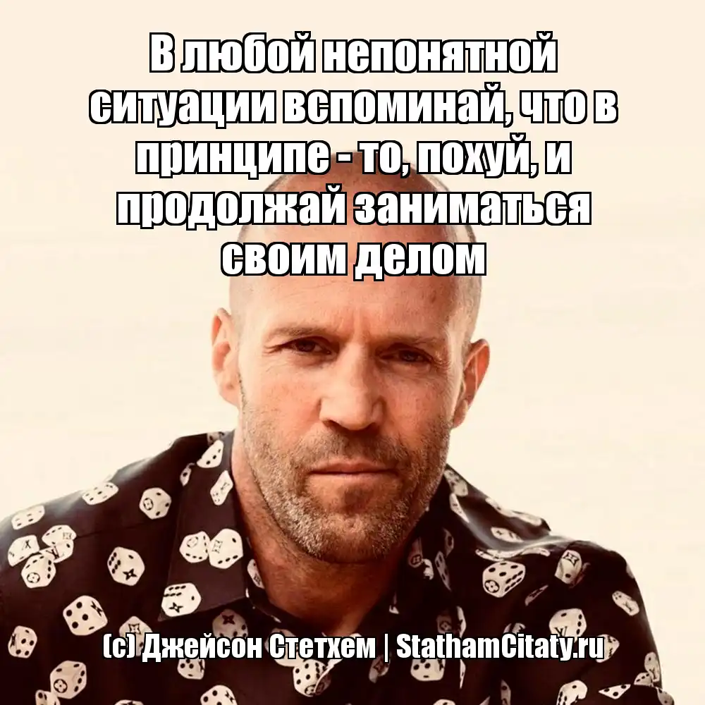 В любой непонятной ситуации вспоминай, что в принципе - то, похуй, и продолжай заниматься своим делом (с) Джейсон Стетхем