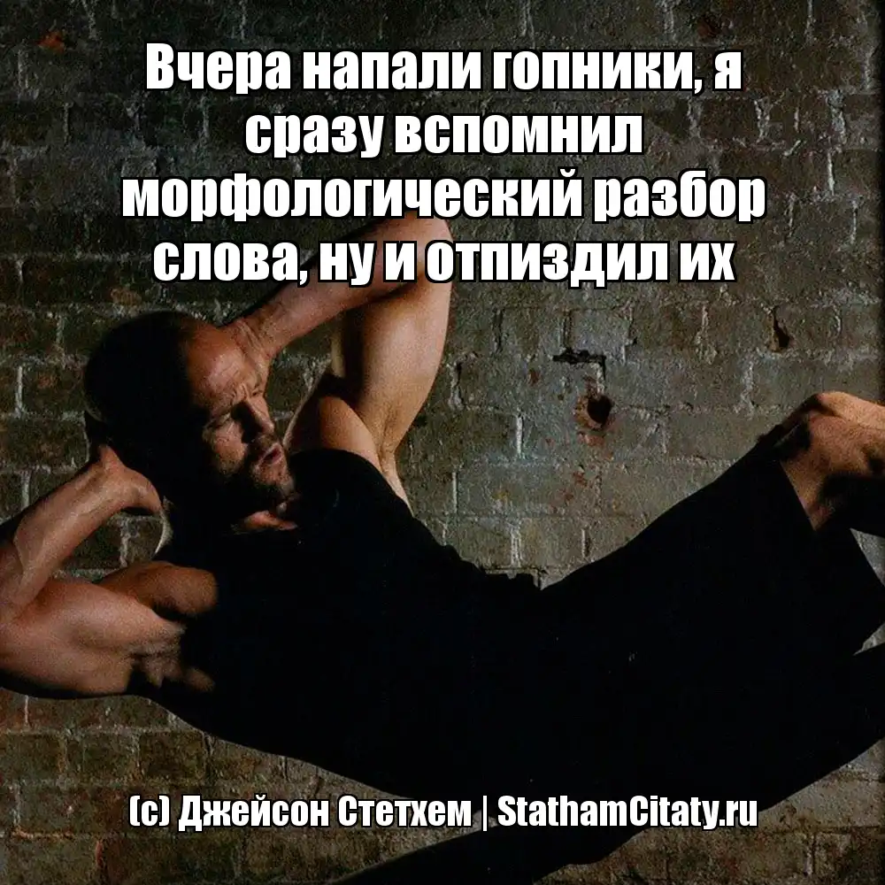 Вчера напали гопники, я сразу вспомнил морфологический разбор слова, ну и отпиздил их (с) Джейсон Стетхем