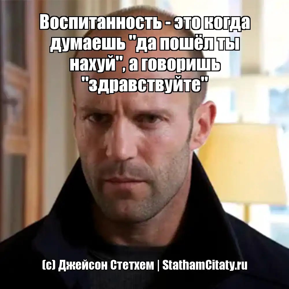 Воспитанность - это когда думаешь "да пошёл ты нахуй", а говоришь "здравствуйте" (с) Джейсон Стетхем