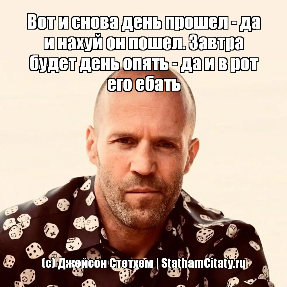 Вот и снова день прошел - да и нахуй он пошел. Завтра будет день опять - да и в рот его ебать (с) Джейсон Стетхем