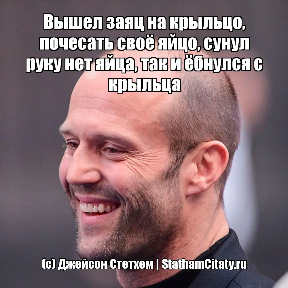 Вышел заяц на крыльцо, почесать своё яйцо, сунул руку нет яйца, так и ёбнулся с крыльца (с) Джейсон Стетхем