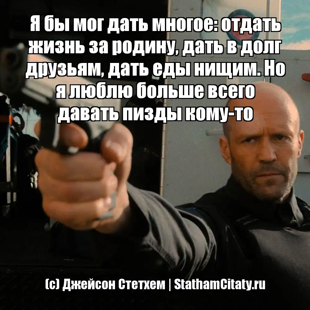 Я бы мог дать многое: отдать жизнь за родину, дать в долг друзьям, дать еды нищим. Но я люблю больше всего давать пизды кому-то (с) Джейсон Стетхем