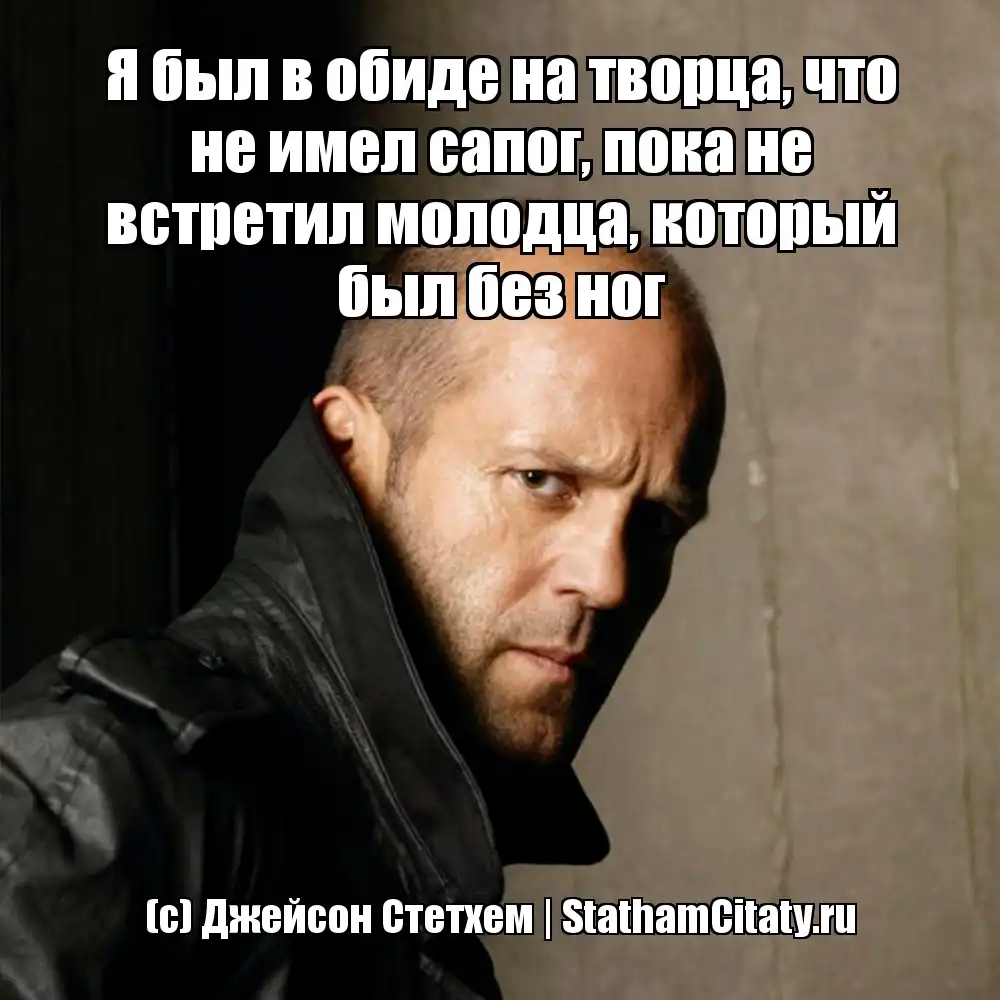 Я был в обиде на творца, что не имел сапог, пока не встретил молодца, который был без ног (с) Джейсон Стетхем