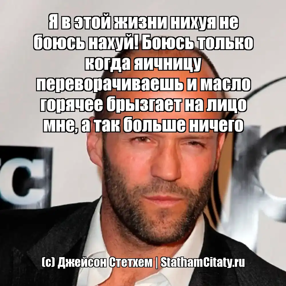 Я в этой жизни нихуя не боюсь нахуй! Боюсь только когда яичницу переворачиваешь и масло горячее брызгает на лицо мне, а так больше ничего (с) Джейсон Стетхем