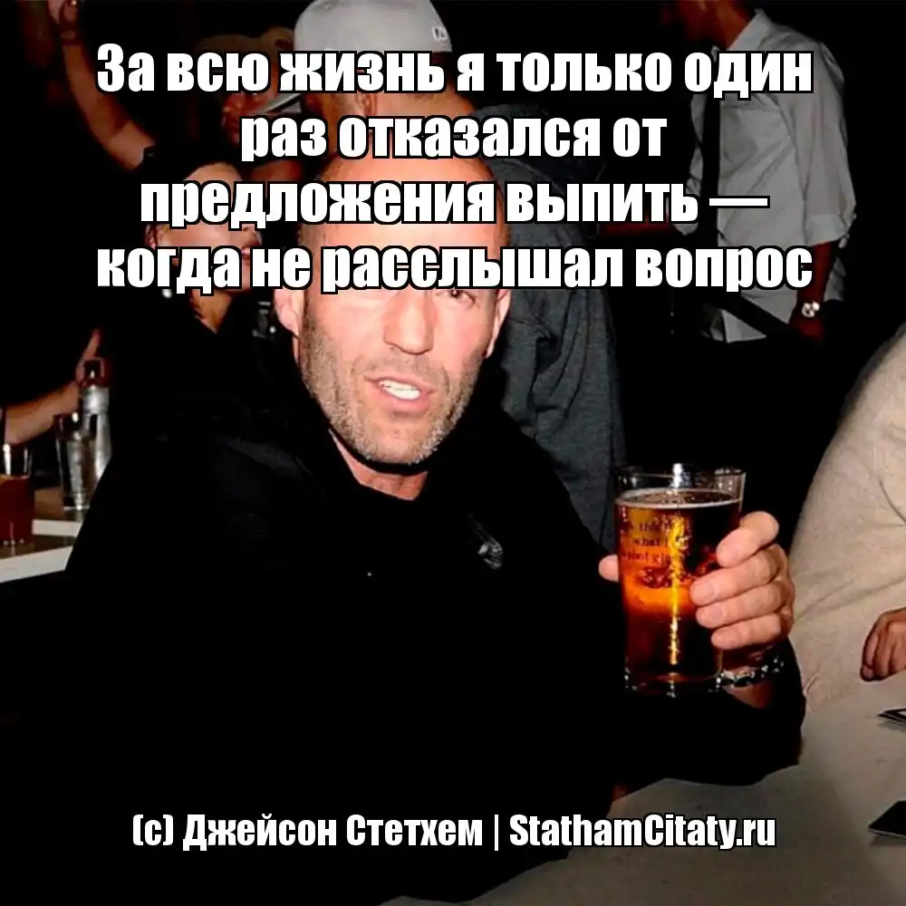 За всю жизнь я только один раз отказался от предложения выпить — когда не расслышал вопрос (с) Джейсон Стетхем