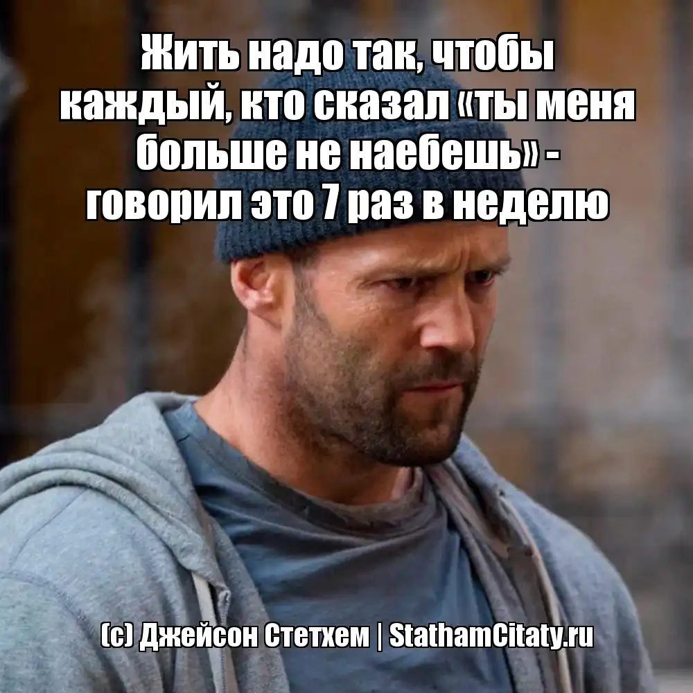 Жить надо так, чтобы каждый, кто сказал «ты меня больше не наебешь» - говорил это 7 раз в неделю (с) Джейсон Стетхем