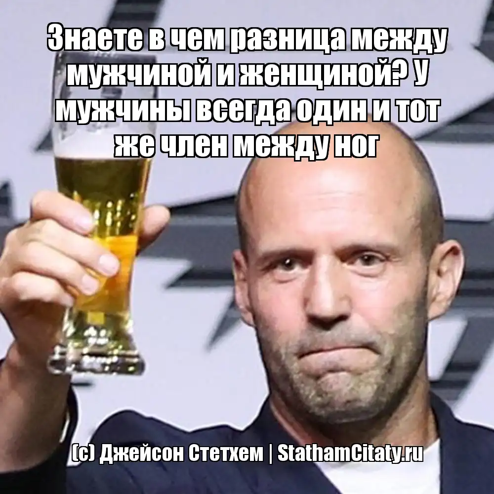 Знаете в чем разница между мужчиной и женщиной? У мужчины всегда один и тот же член между ног (с) Джейсон Стетхем